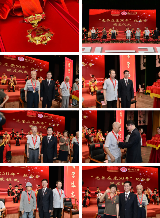有6位老教师与全国710多万名老党员共同获得了首届“光荣在党50年”纪念章,它们分别是:国家级专家、两度荣获福建省“劳动模范”称号的康金章教授,计算机系退休教师林啟宇老师、魏麟应老师、陈荣山副教授、李金炼副教授,数学系退休教师李淑英副教授。感怀老党员教师们爱岗敬业、拼搏担当、无私奉献的精神,相信此次“光荣在党50年”纪念章的颁发仪式,也将让毕业生党员以老一辈党员为标杆与榜样,坚定了全体毕业生为祖国和党的建设事业贡献青春力量的信念。