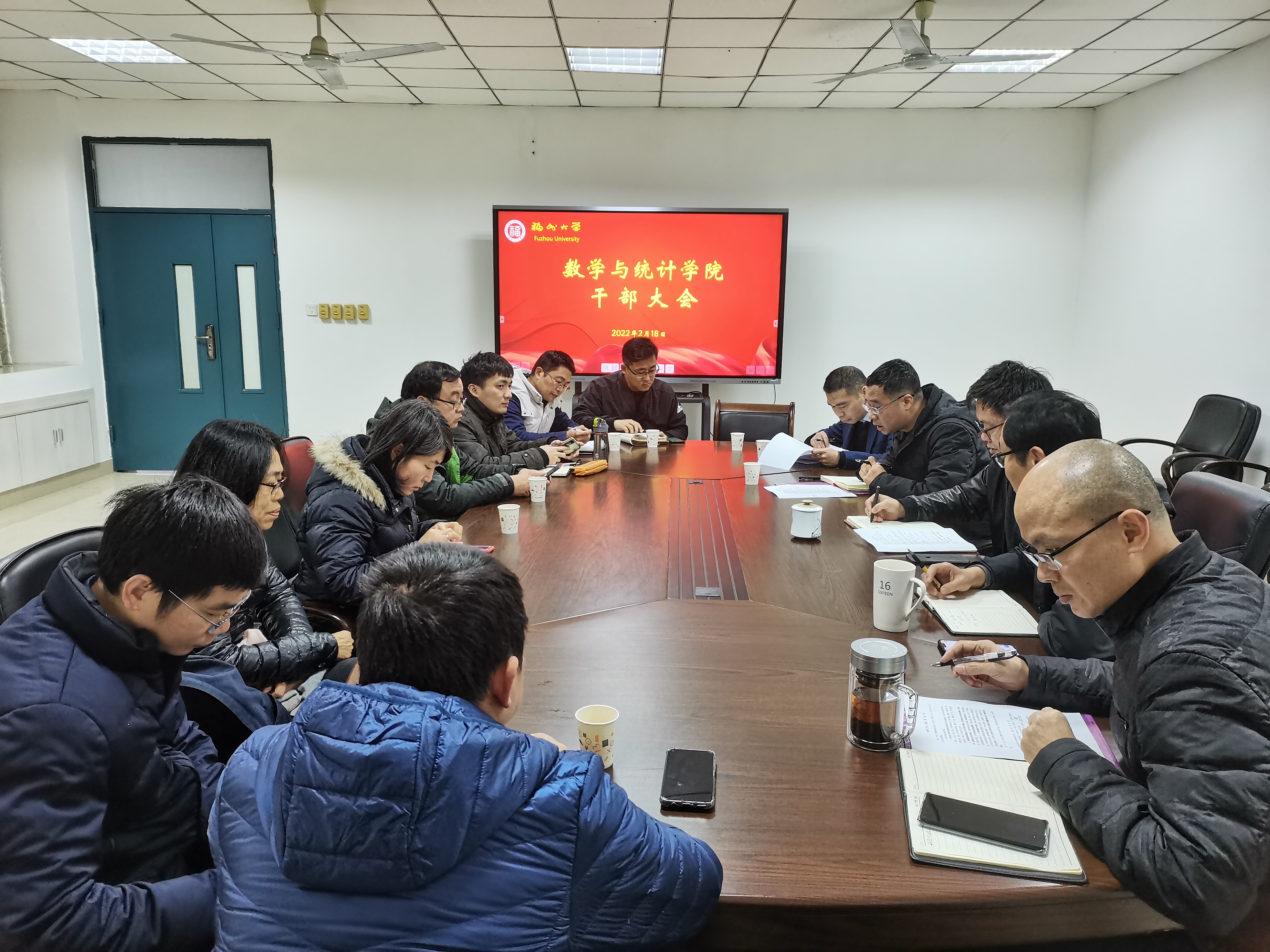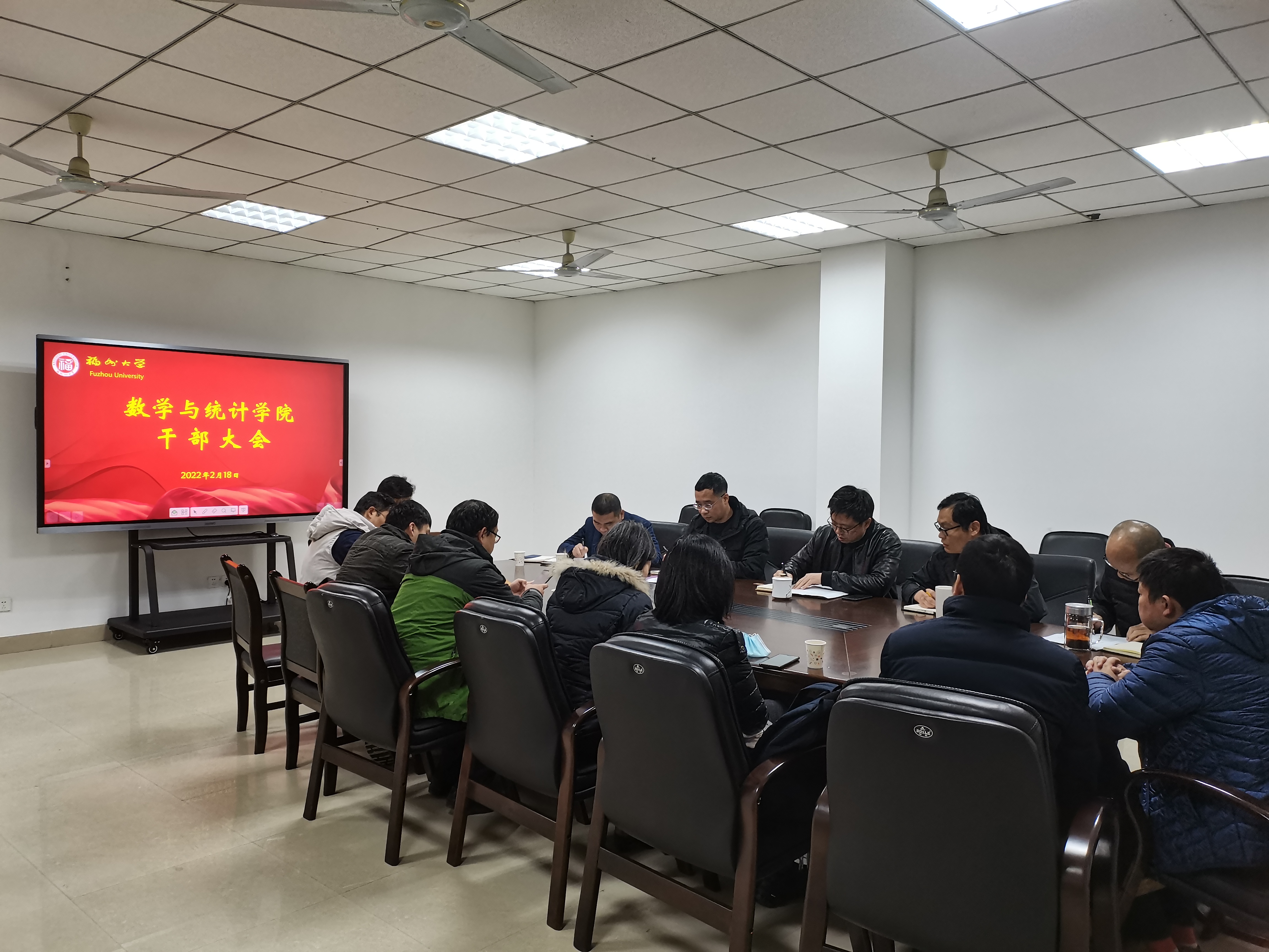 在院408A会议室召开2022年春季新学期干部会议。会议由学院党委书记吴唐风主持,学院党政领导、工会主席、系主任、科级干部、教工支部书记参加会议。