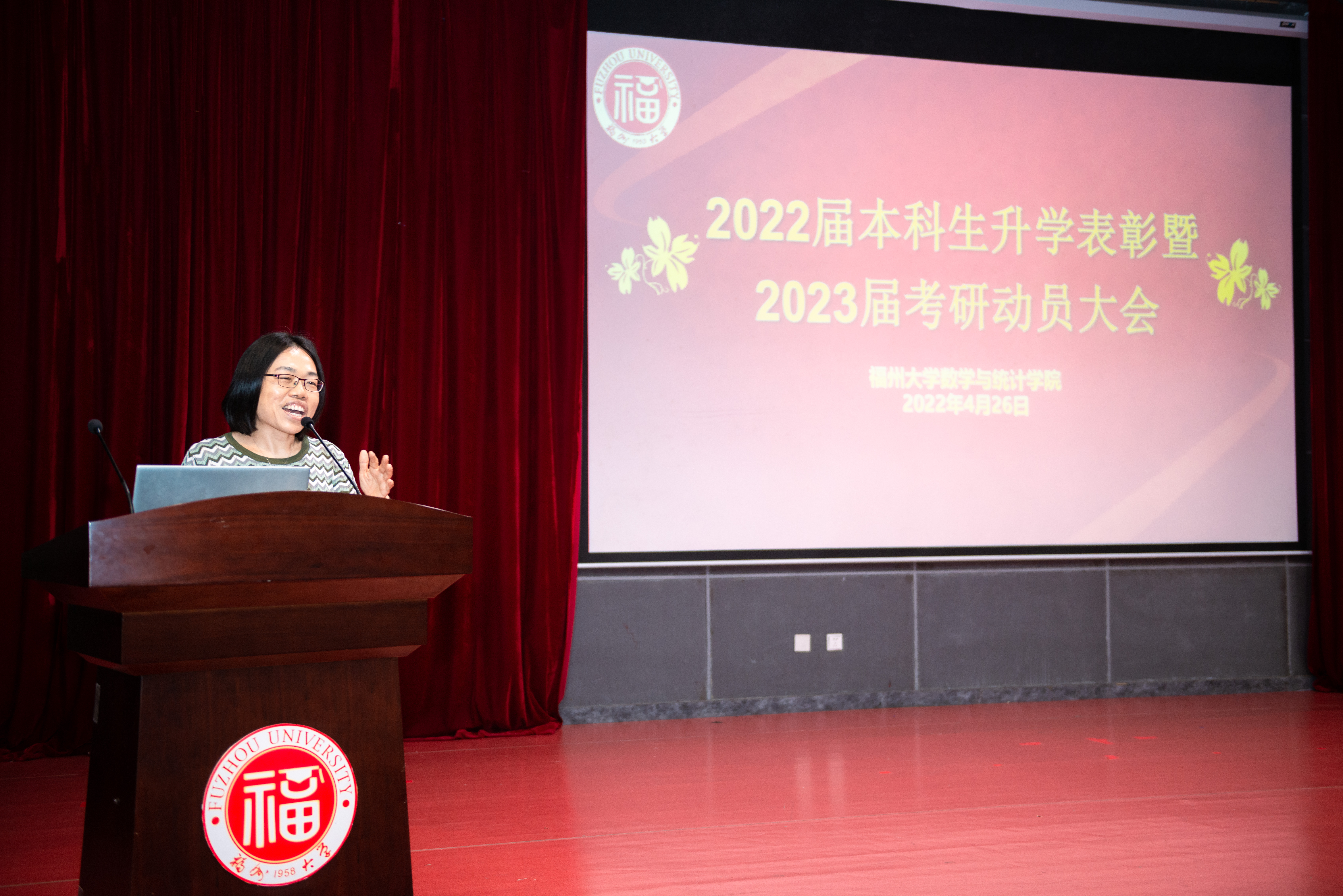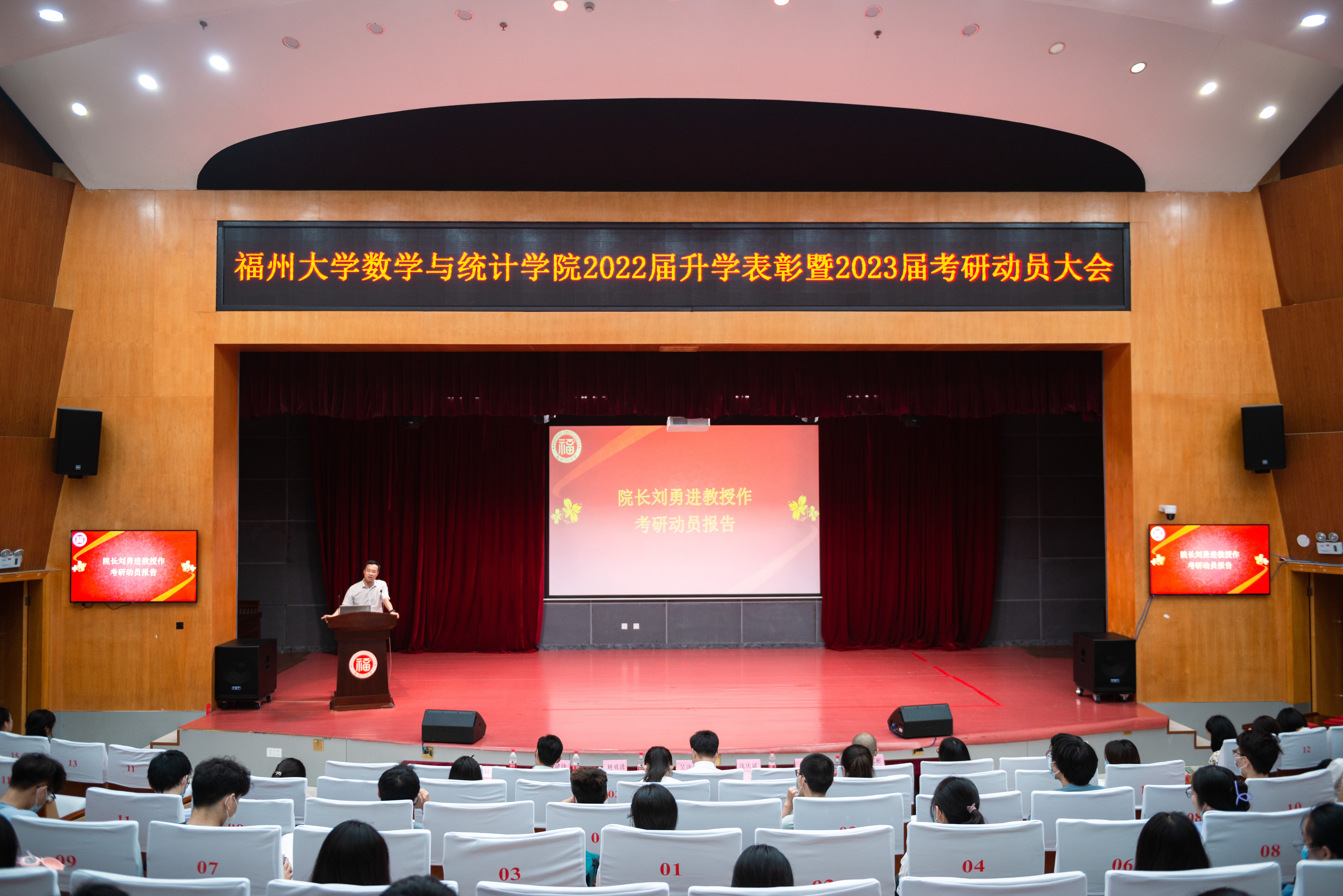 2022届本科生升学表彰暨2023届考研动员大会在图书馆明德厅召开。学院党委书记吴唐风、院长刘勇进、副院长侯建锋、副院长程航、统计与数据科学系主任黄文彬、团委副书记权斌、2021级辅导员黄薇、兼职辅导员傅源源等老师、2018级考研升学同学及2019级全体同学参加会议。大会由学院党委副书记沈庆斌主持。