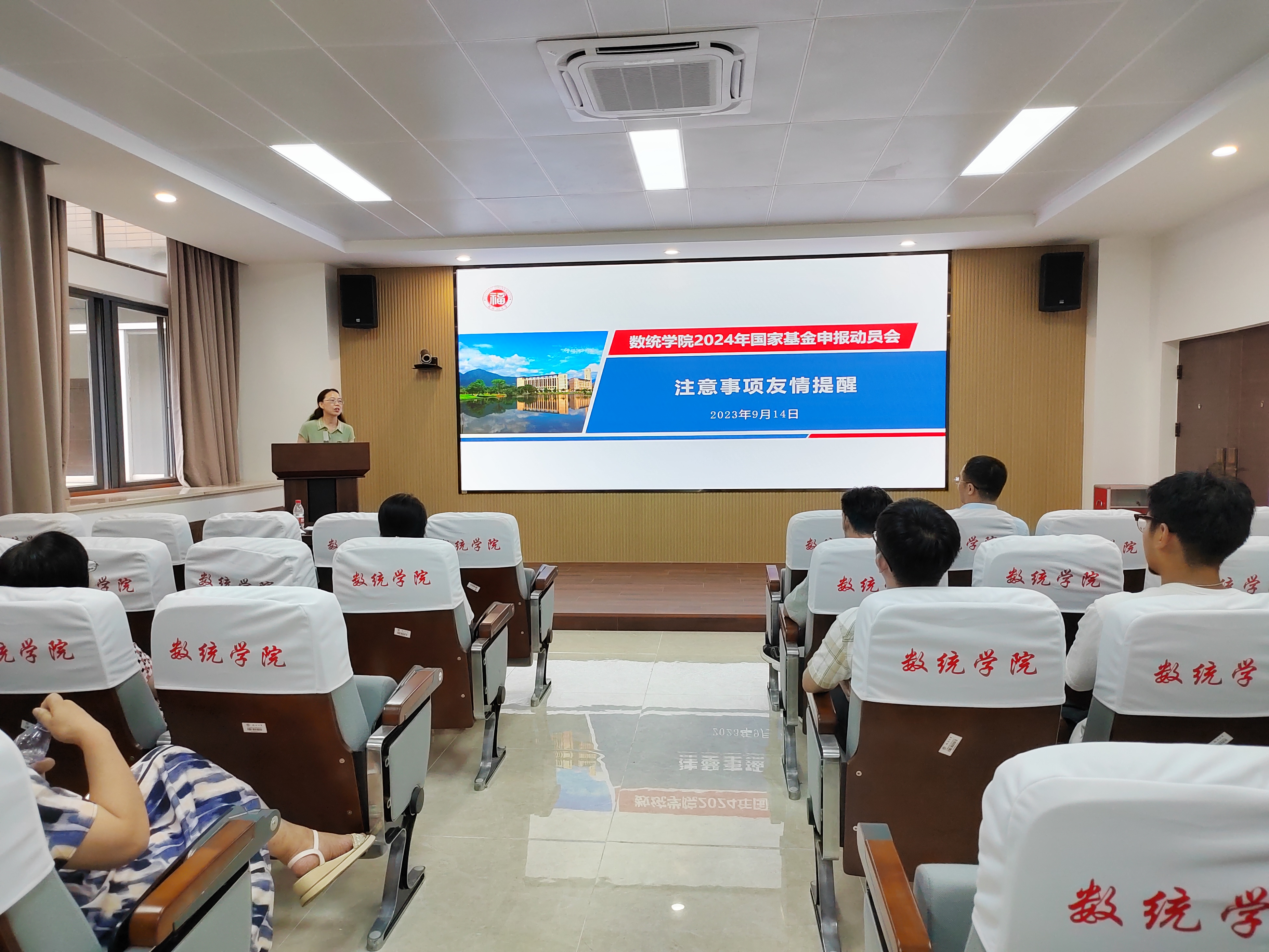2024年国家自然科学基金(以下简称:国家基金)申报动员会在208报告厅召开。学院党委书记郑世珠、院长刘勇进、副院长侯建锋,以及学院骨干教师和科研干事参加了本次会议。会议由副院长侯建锋主持。