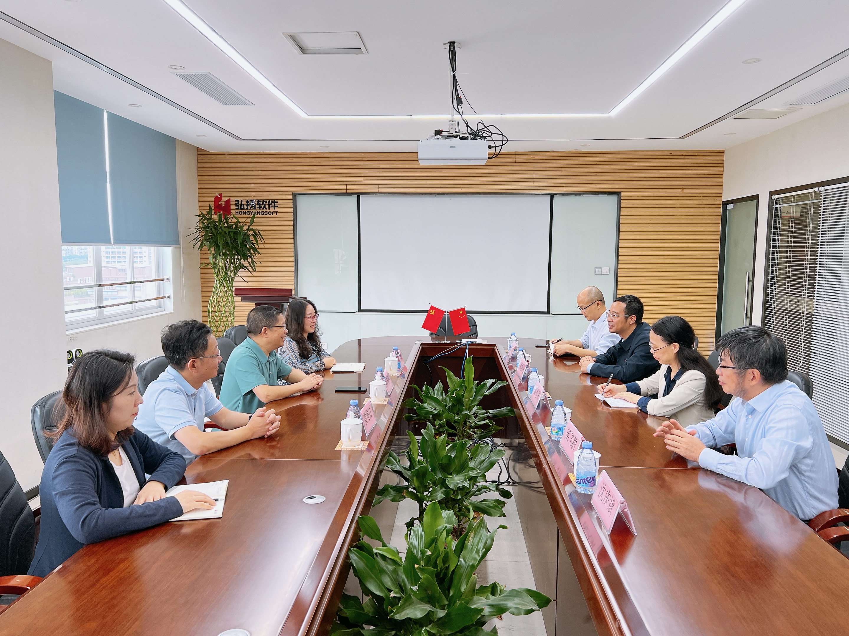 为加强校企合作,促进产学研深度融合,帮助学生拓展优质的实践教学基地,提高就业质量,2023年10月11日上午,学院郑世珠书记、刘勇进院长、程航副院长、梁飞豹副教授一行走访了弘扬软件股份有限公司,与公司陈瑞典董事长(应用数学专业80级校友)和公司相关部门负责人座谈交流。