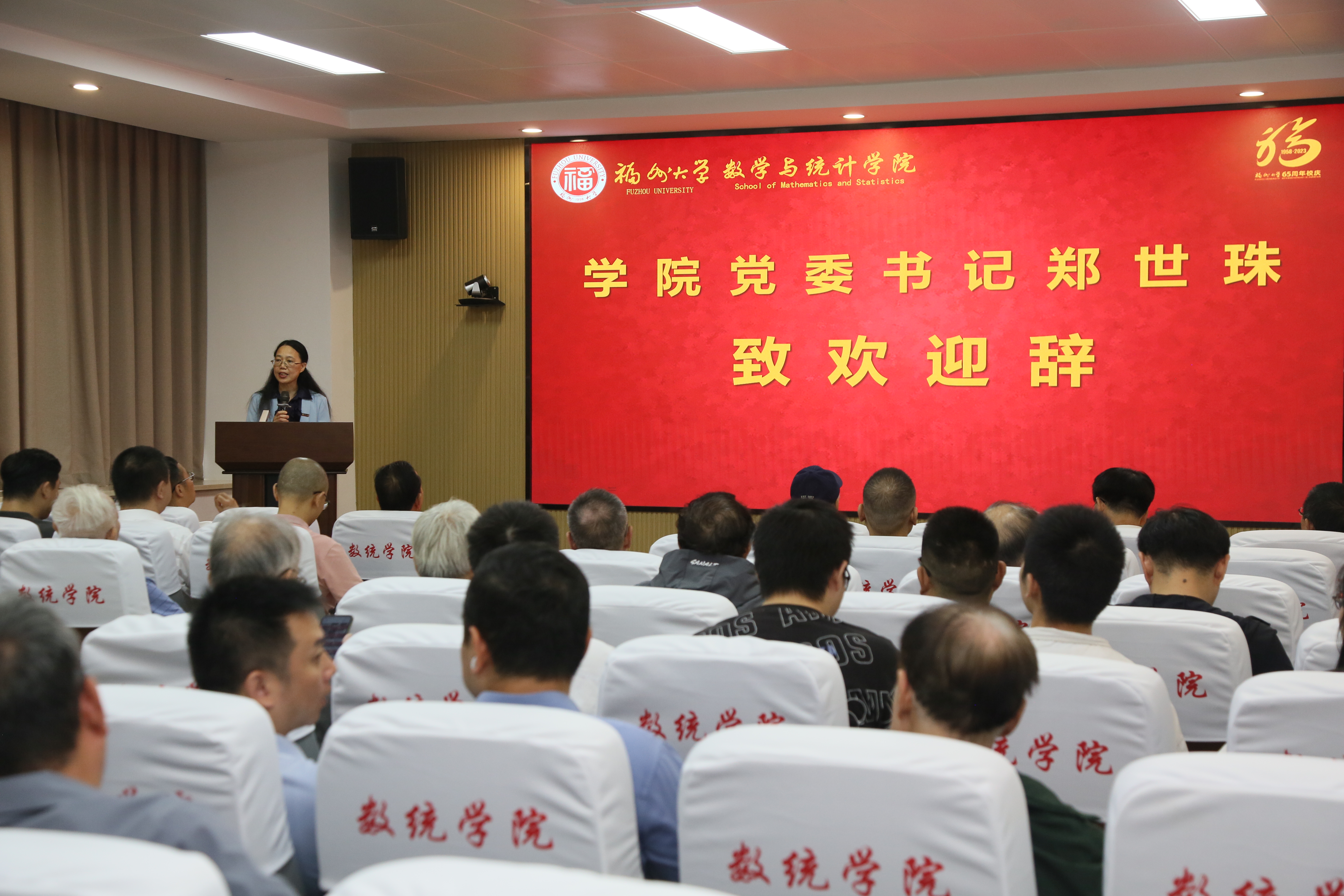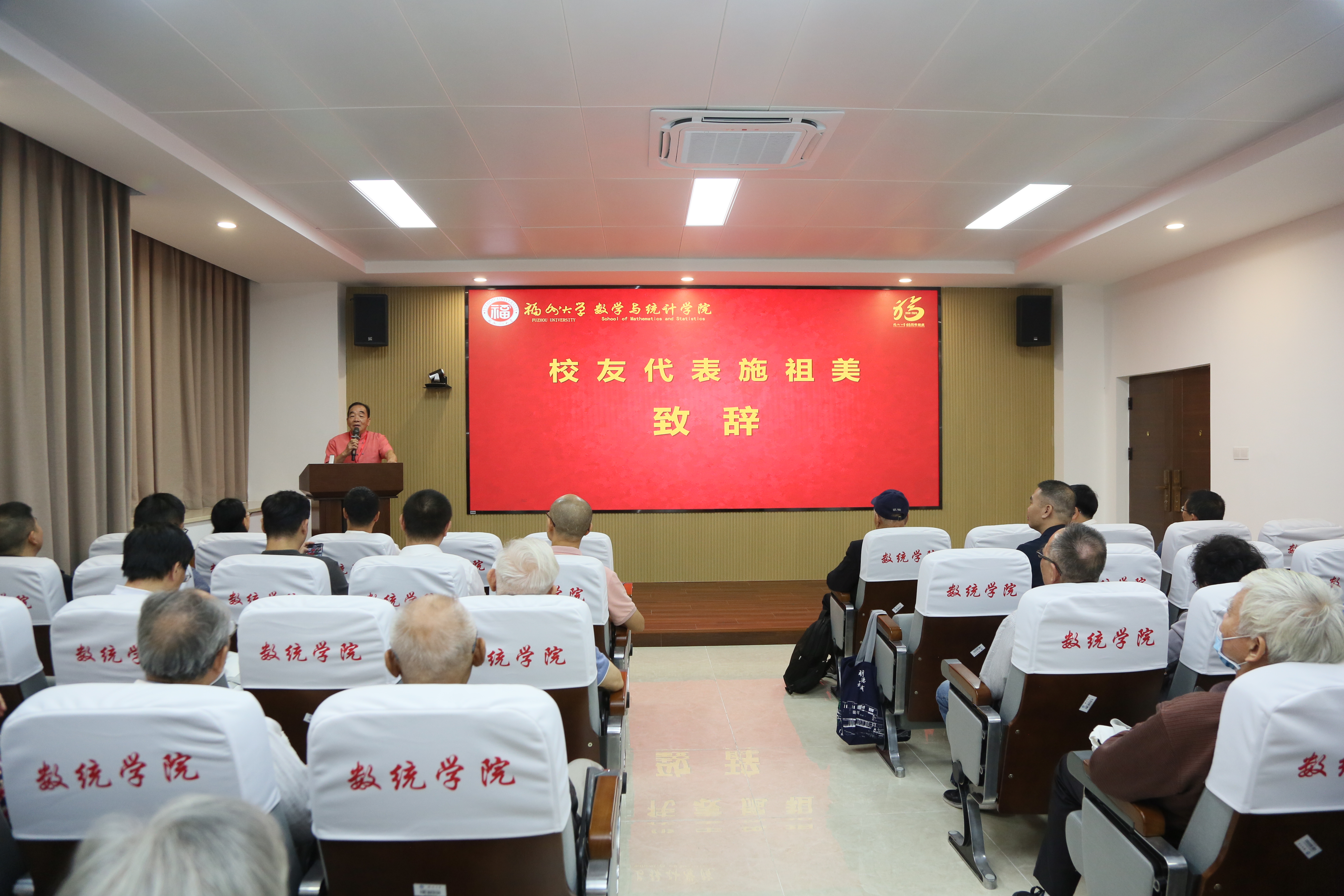 高质量发展论坛暨建校65周年系列活动开幕式在旗山校区文体综合馆隆重举行。开幕式以线上线下相结合的方式,通过网络平台同步直播。在学院208报告厅,校友们通过网络直播观看,一起回望峥嵘岁月,共话发展前景。