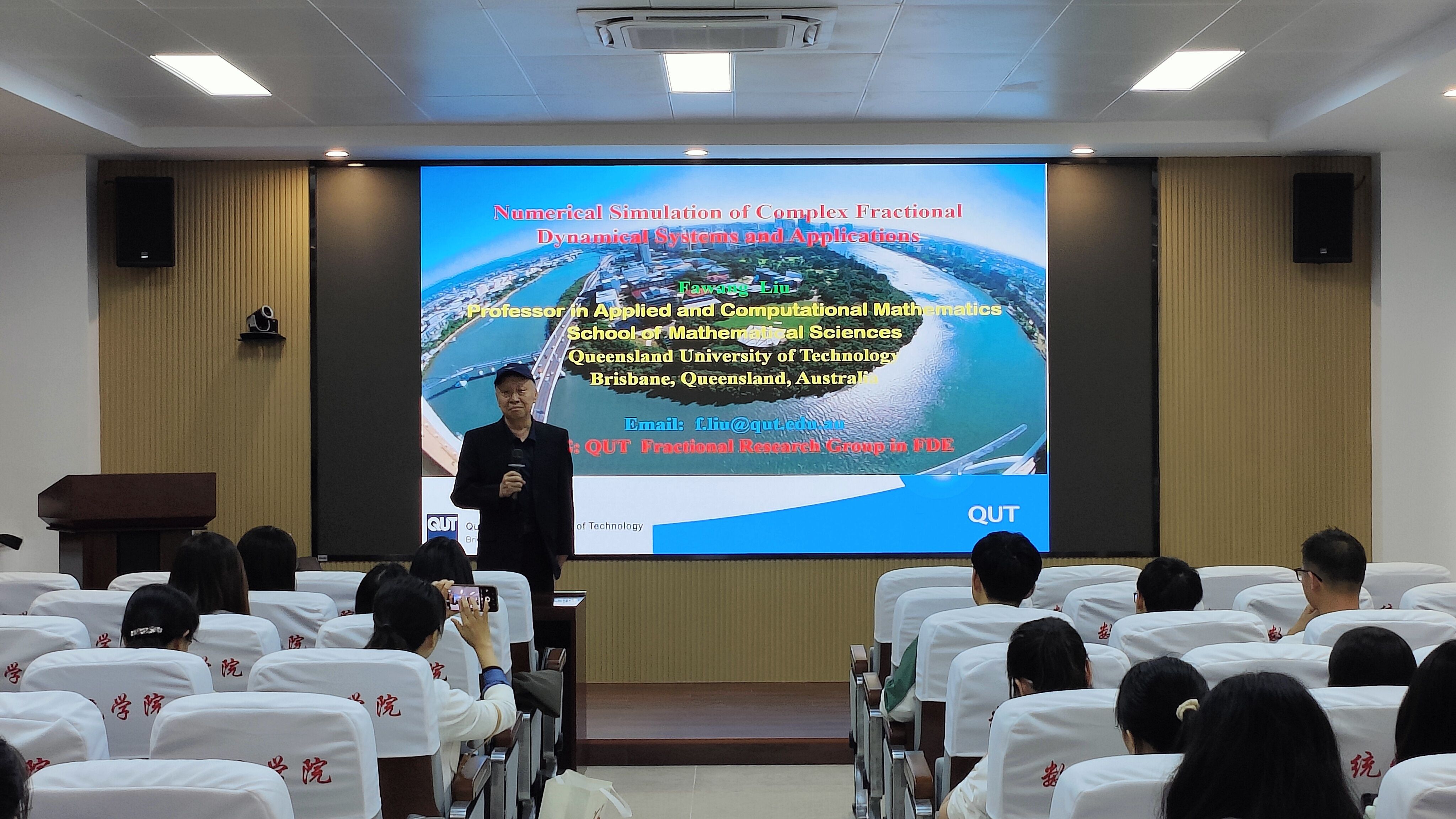 校庆活动日当天,学院还组织校友们前往晋江楼参观新校史馆,重温母校峥嵘岁月、发展变迁,体悟母校辉煌历程、风雨征途。下午在208报告厅举办了专场学术报告会。邀请了学院校友、学术界知名专家、澳大利亚昆士兰科技大学数学科学学院刘发旺教授作题为《数值模拟复杂的动力系统及其应用》的讲座。