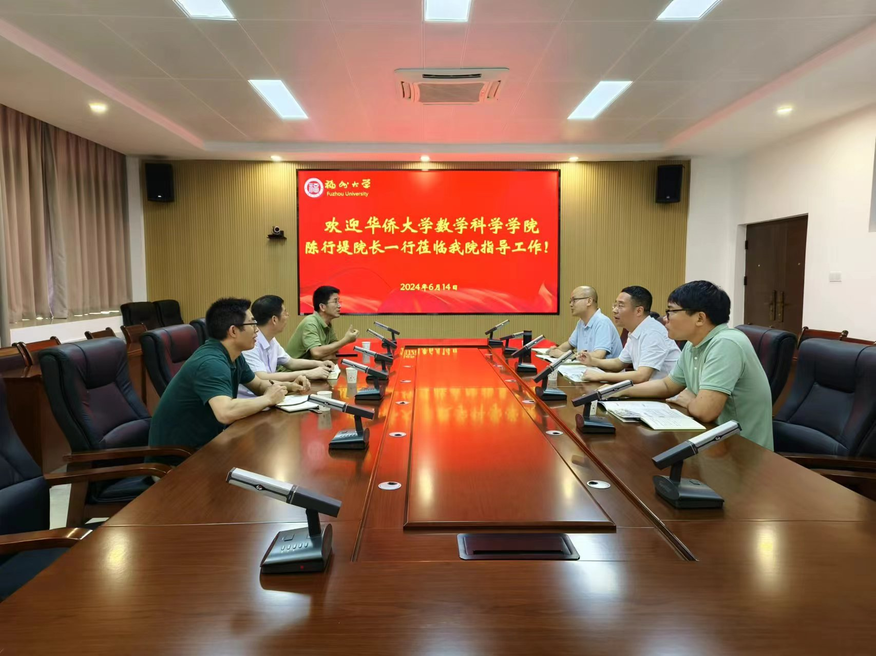 6月14日上午,华侨大学数学科学学院院长陈行堤、副院长汤龙坤、数学与应用数学系主任林增强一行来到爱情岛论坛 调研与交流,学院院长刘勇进、副院长程航、院长助理曾庆厚参加了座谈会。