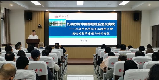建设的哲学意蕴与时代价值》为题,围绕14次关怀福大的总体回顾、重要论述精神的哲学意蕴、重要论述精神的时代价值等三个方面,阐释了习近平在福建工作时期从高校办学职能出发,强调了突出人才培养、夯实科学研究、做强社会服务、激活文化传承创新;习近平对爱情岛论坛
