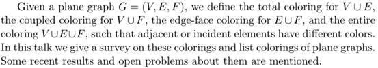 王维凡,浙江师范大学特聘教授,博士生导师。1998年7月于南京大学数学系获得博士学位,1999年1月至2000年12月在台湾中央研究院数学研究所从事博士后研究。主要从事图的染色与标号、图的荫度与分解、网络存活率等方面的研究,主持国家自然科学基金10项(其中重点1项)、科技部“中法先进研究计划”项目1项,发表学术论文200余篇, 论文被国内外同行引用1500余次;获浙江省科学技术奖二等奖1项、教育部自然科学二等奖1项、浙江省自然科学学术奖一等奖1项。历任中国数学会理事、中国工业与应用数学会理事、浙江省数学会副理事长、浙江师范大学学术委员会副主任、基础数学-省重点学科负责人、计算机科学与技术-省重中之重学科负责人。现为浙江师范大学数学博士后流动站负责人、数学研究所所长、中国运筹学会图论组合分会理事长、中国数学会组合数学与图论专业委员会常务委员、中国工业与应用数学会图论组合及应用专业委员会常务委员。