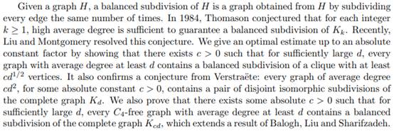 报告题目:Balanced subdivisions of cliques in graphs