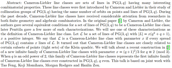报告题目:Cameron-Liebler Line Classes, Tight Sets and Strongly Regular Cayley Graphs