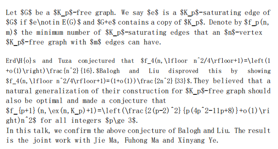 报告题目:The minimum number of clique-saturating edges