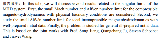 报告题目:Singular limits of the compressible/incompressible magnetohydrodynamics