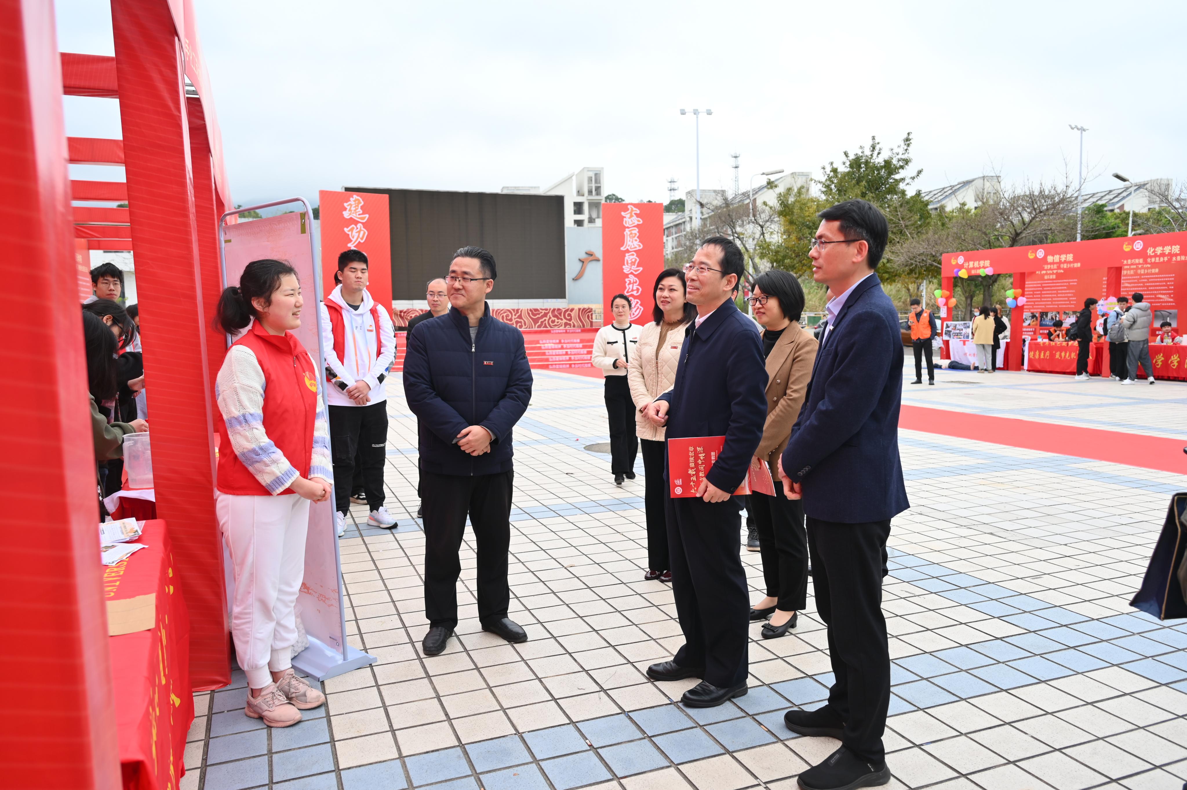 3月6日早,团中央青年志愿者行动指导中心主任石新明、共青团福建省委副书记魏玲一行来到青春广场观看2024年“学雷锋”社区实践志愿服务项目展示,与爱情岛论坛 项目负责人进行亲切交流并提出指导意见,校党委副书记黄身勇陪同调研。