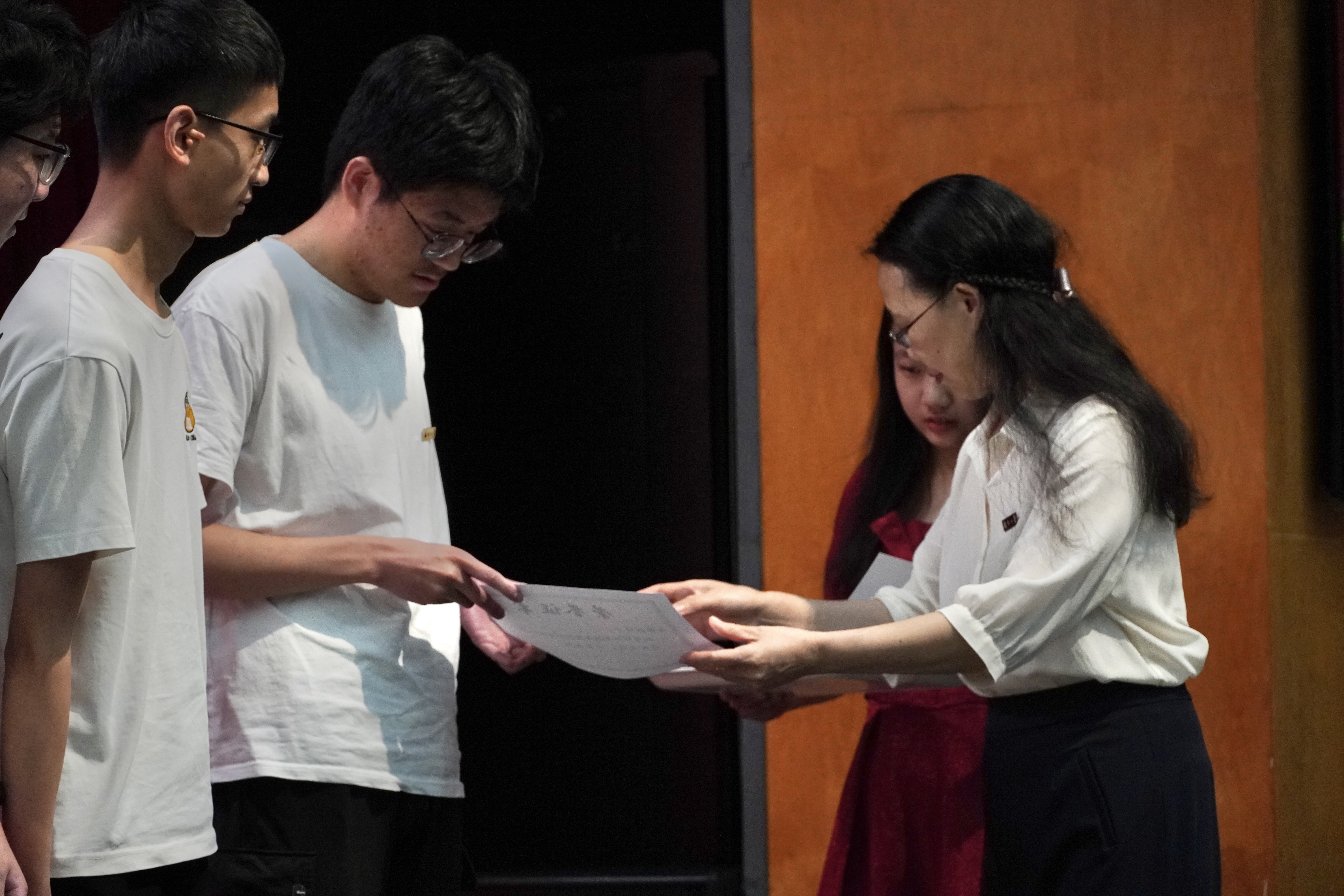 程航副院长宣读2024届升学录取表彰名单,郑世珠书记、刘勇进院长、程航副院长、曾庆厚博士依次为受表彰同学颁发证书和纪念品,以表彰他们四年以来的辛勤耕耘,并鼓励他们在未来的学习道路上继续努力,再创佳绩。