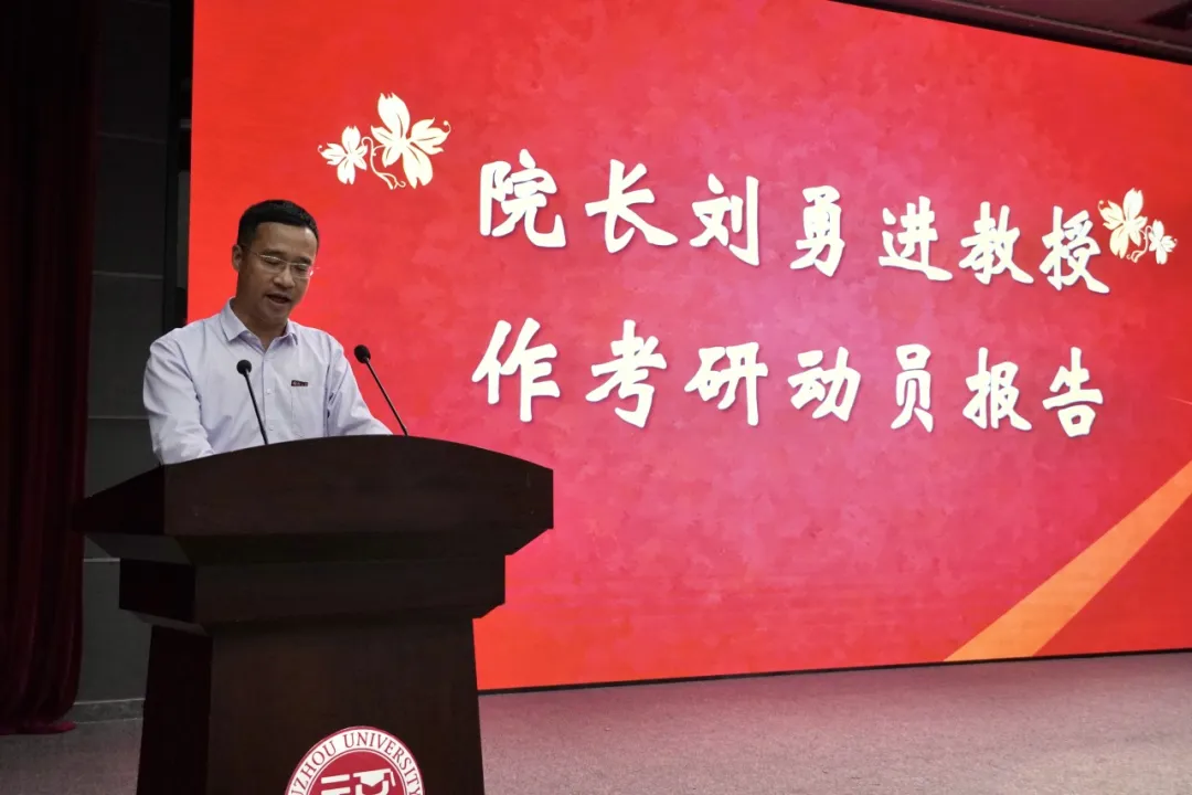 随着升学表彰大会的圆满结束,考研动员大会紧随其后,院长刘勇进教授作考研动员。