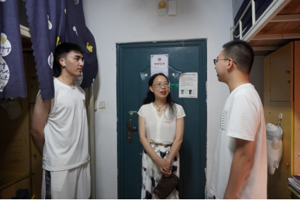 党委郑世珠书记深入学生生活三区,走访所联系的2021级数学类1班、2022级经济统计学班级和35号楼宇兼合党支部所在的31栋、34栋和35栋楼宇部分学生宿舍,年级辅导员舒婧妍老师陪同走访。