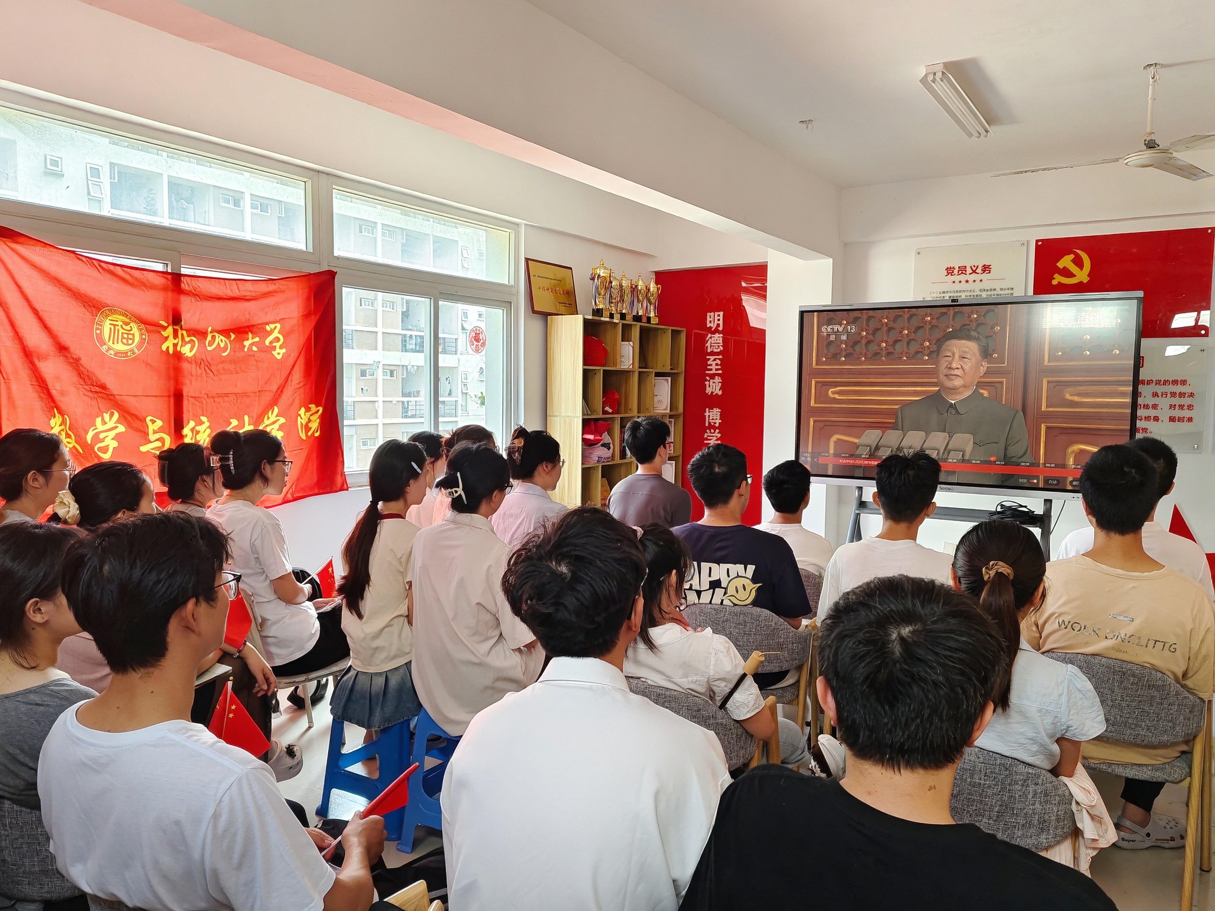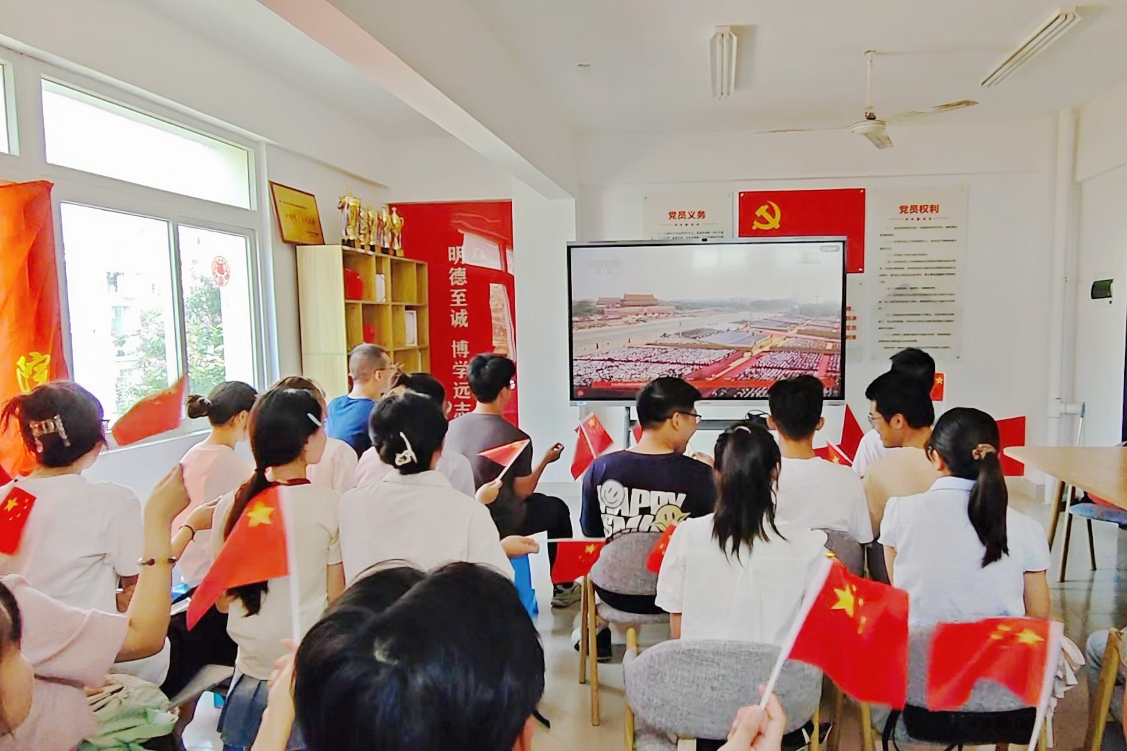于学生公寓35号楼2楼“一站式”学生社区共享活动室组织暑期留校学生观看了大会直播,通过一方屏幕,感受历史的厚重与时代的荣光。辅导员许佳琦、兼职辅导员傅源源与暑期留校学生共同观看了这场意义非凡的历史性盛会。
