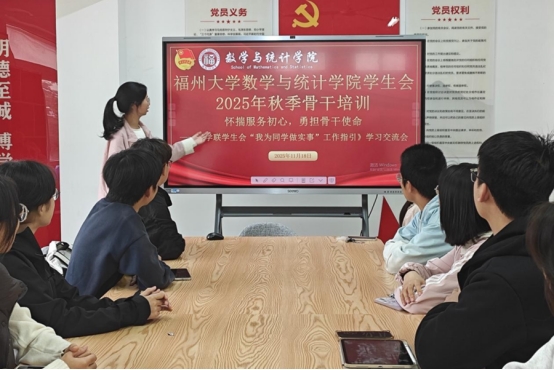 学生会在学生公寓35号楼2楼“一站式”学生社区共享活动室顺利开展2025年秋季骨干培训暨《学联学生会“我为同学做实事”项目实施工作指引》学习交流会。院学生会主席团成员及各部门主要负责人参加本次会议。