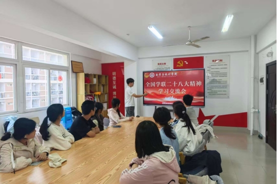 学生会于学生公寓35号楼2楼 “一站式” 学生社区共享活动室,召开全国学联二十八大精神专题学习会。学生会全体成员齐聚一堂,深入研读会议精神,凝聚青春奋进力量。