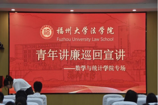 研究生会特邀法学院“青年讲廉”巡回宣讲团于学院208报告厅举办专场宣讲活动。活动以“朋辈示范、榜样引领、以讲促思、以廉润心”为主线,赵若雯、高亚岑、许静欣、魏祎飞、熊婉迪等五位青年宣讲人立足校园实际,结合鲜活案例,围绕“廉洁”主题展开深度交流。
