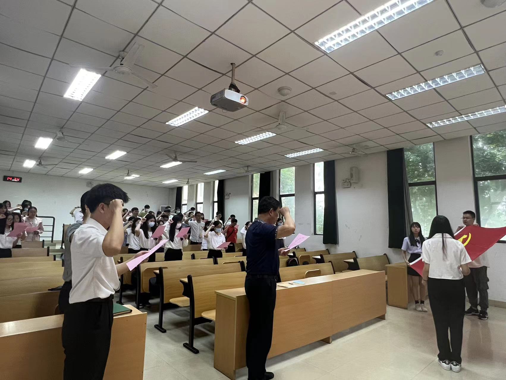最后,全体与会党员起立,共唱《国际歌》。2022届毕业班党员主题教育暨重温入党誓词活动在振奋人心的歌声中结束。