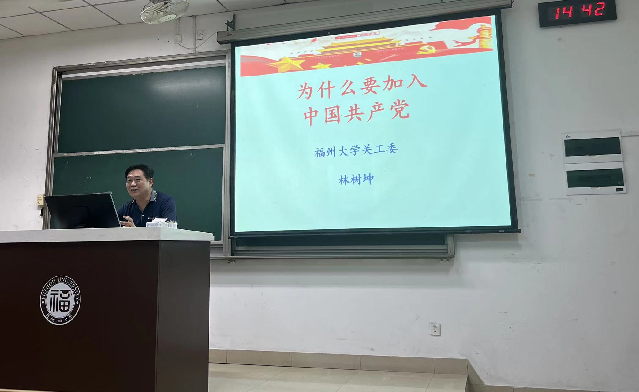 随后,林树坤老师给全体毕业生党员上《为什么要加入中国共产党》的专题党课。课上强调到要正确认识入党动机,只有端正入党动机,才符合党员条件。林老师以身边入党积极分子的故事为例,向同志们提出做到思想上、组织上、行动上真正入党的要求。对于所有党员,无论党龄长短,都要牢记,端正入党动机要经得起组织的考验,只有端正入党动机,才能保持党的先进性和纯洁性。作为每一名共产党员应该严格以党员条件时刻衡量自己,提高党的修养,增强理想信念。