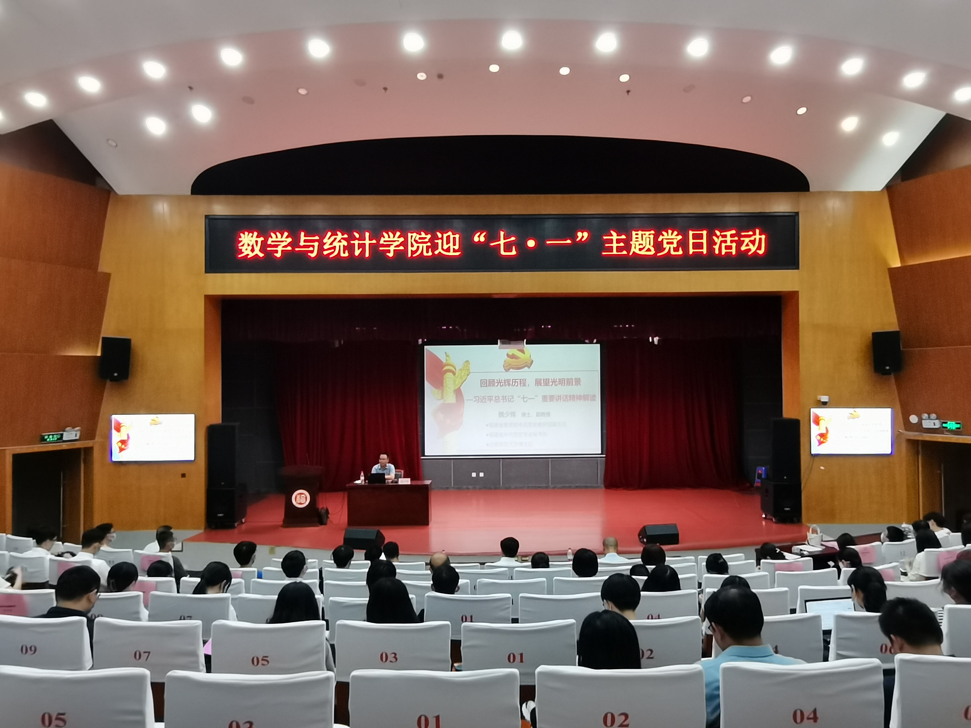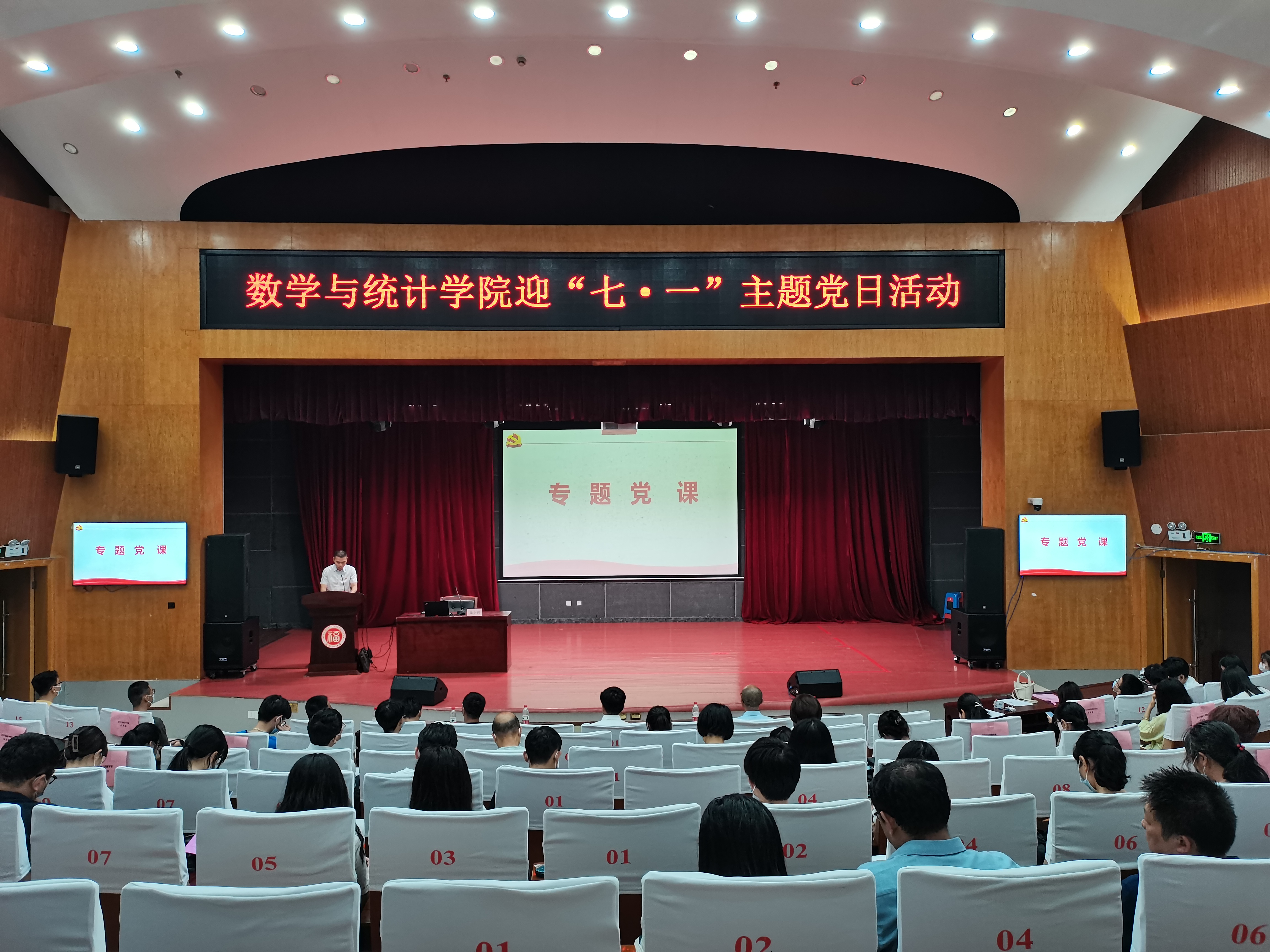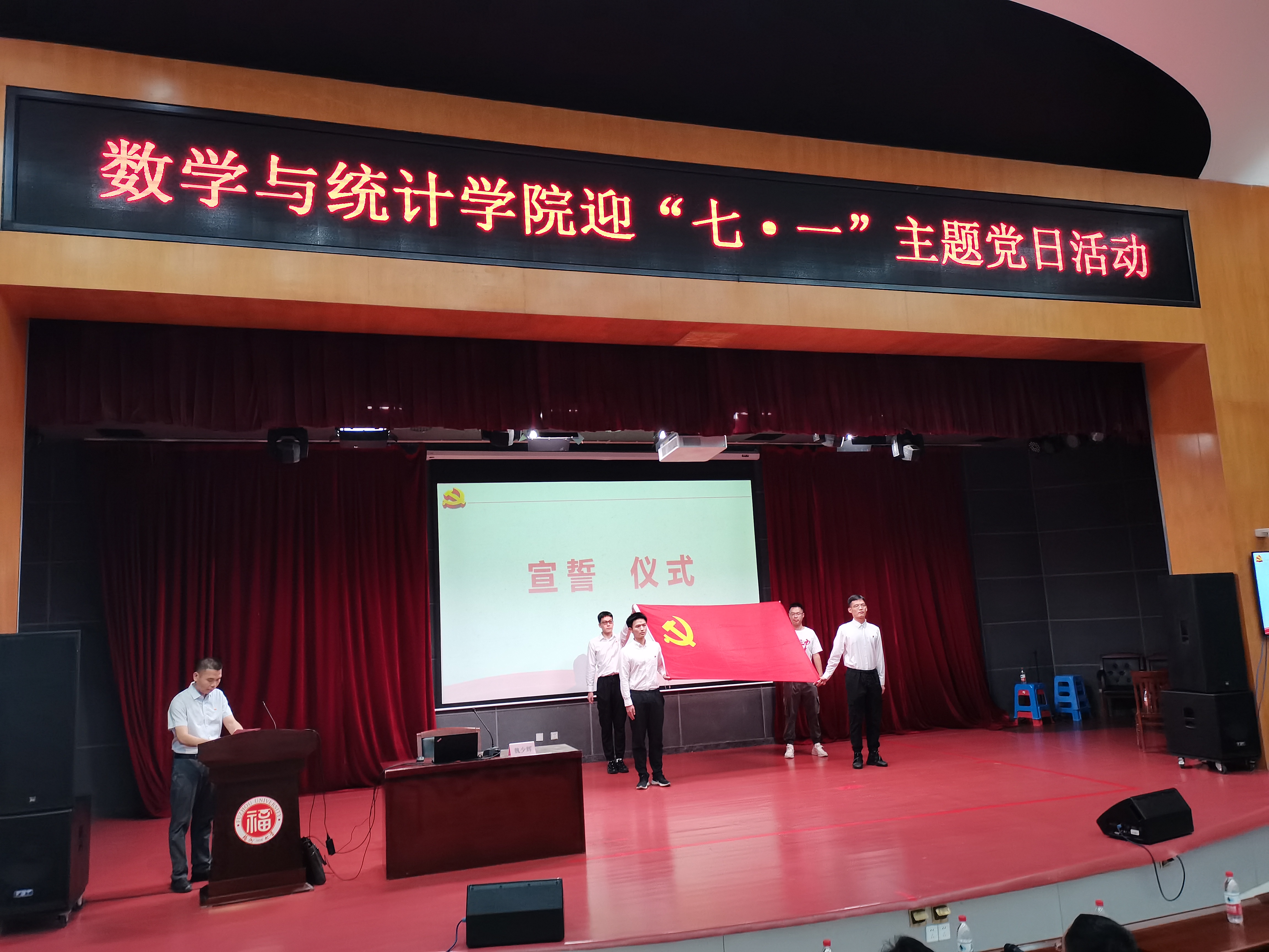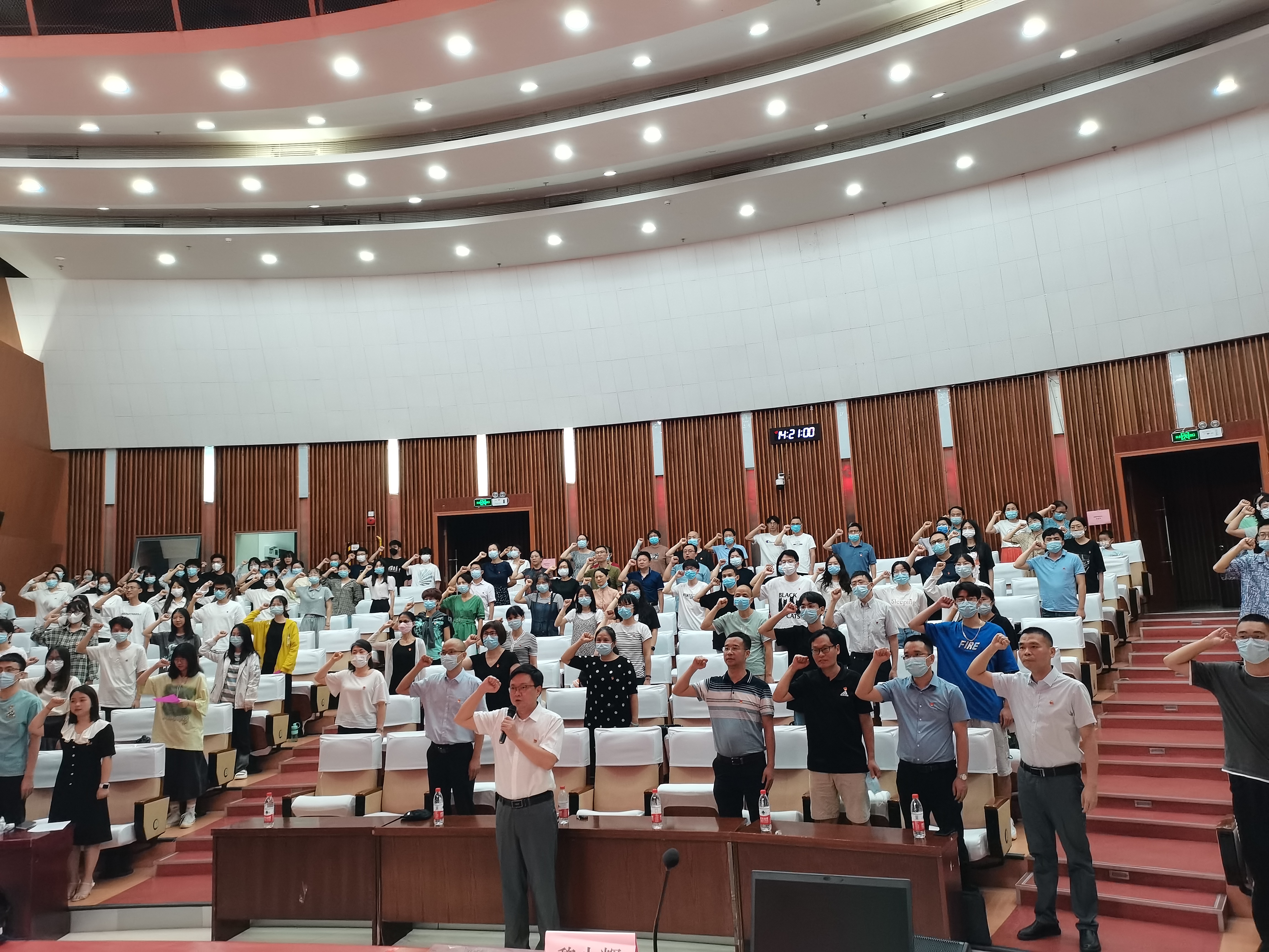 迎“七一”主题党日活动。学院领导班子、全体师生党员参加了本次主题党日活动。本次活动有两项内容:一是开展入党宣誓活动,组织新老党员开展入党宣誓和重温入党誓词;二是开展听一堂党课活动,邀请专家为全体党员讲一次党课。