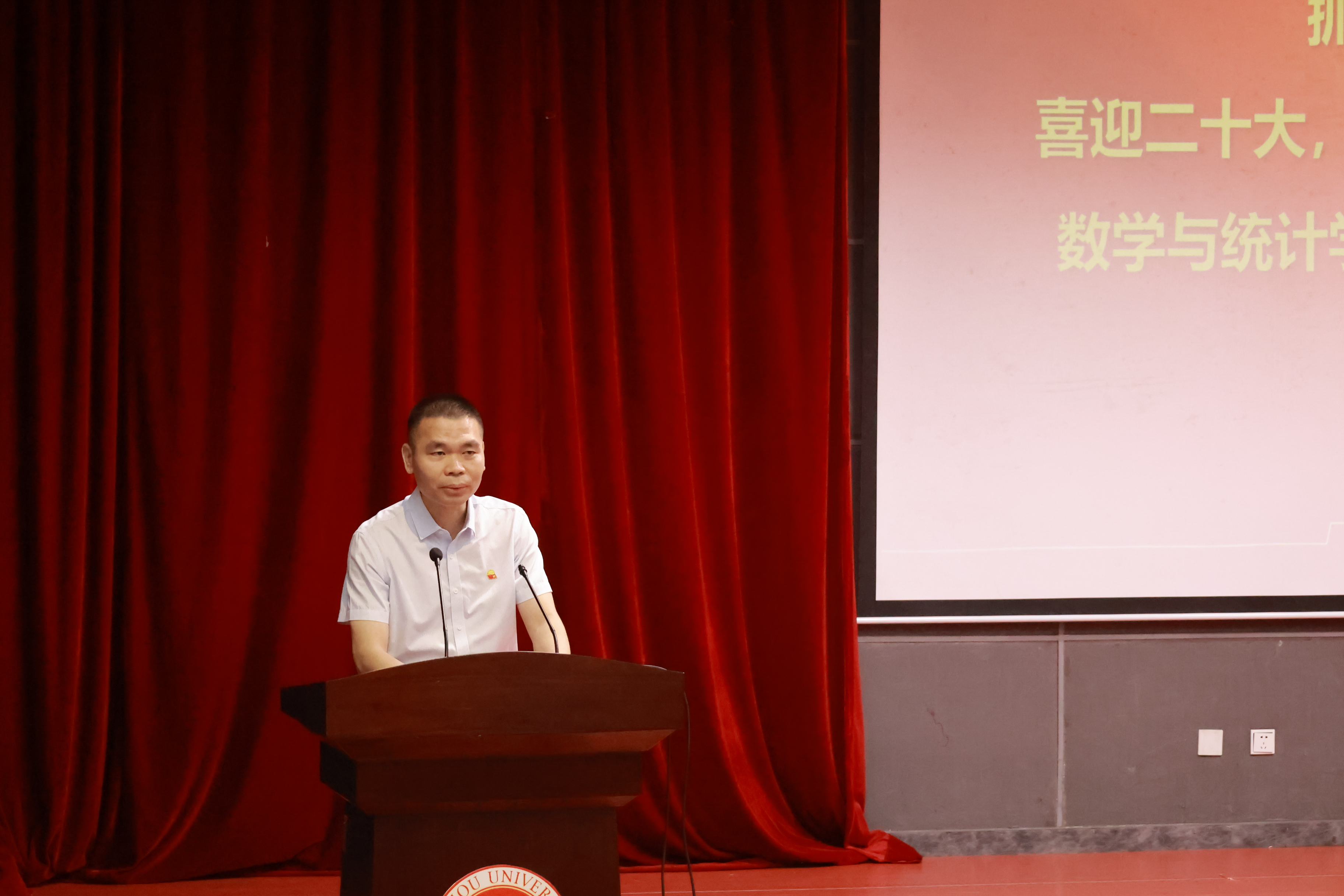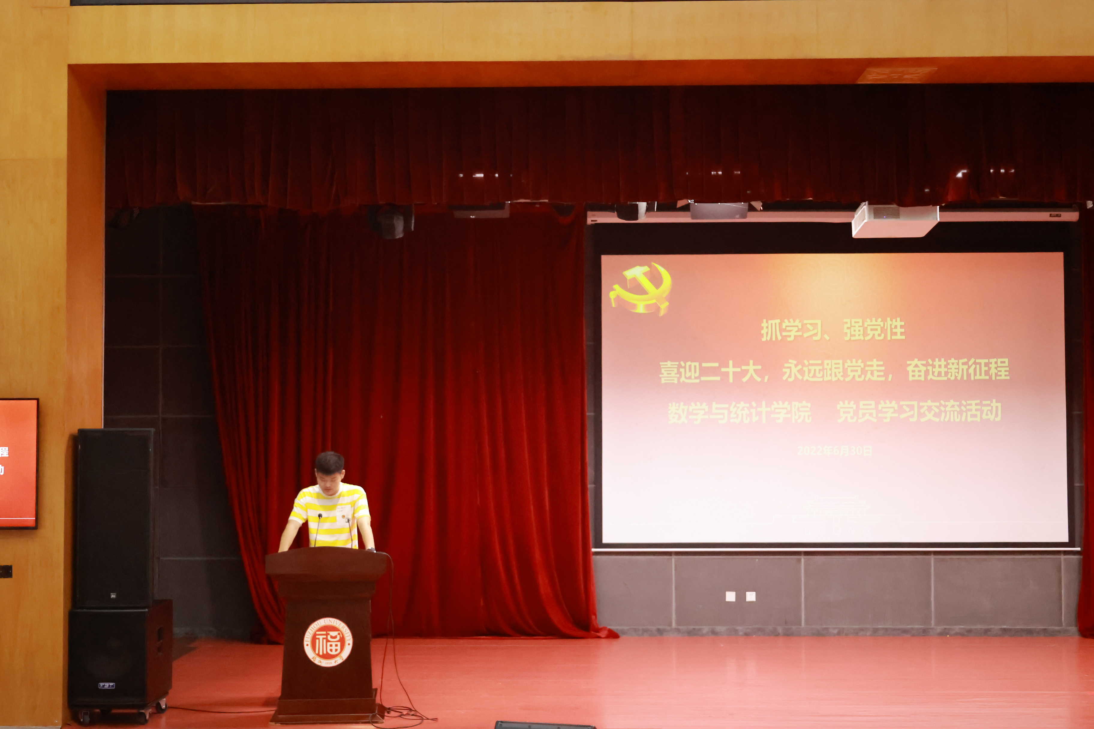 院团委副书记权斌,首先宣读了2022年上半年“学习强国”优秀学员名单。接着博士生党员胡昕钰、2020级数学与统计专业党支部书记林忻怡、院学生会主席团黄杰,分别上台从多个方面作了“自我学习、自我提高”的个人学习交流发言,与参加会的同志们分享了,如何加强党员政治理论学习,在学习中如何做到学得悟透,融会贯通,真信笃行。