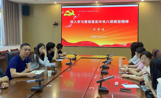 6月6日上午,刘勇进院长深入其所联系的2024级数学2班研究生党支部、2023级应用统计班,在学院312会议室讲授了“深入学习贯彻落实中央八项规定精神”专题党课(思政课)。