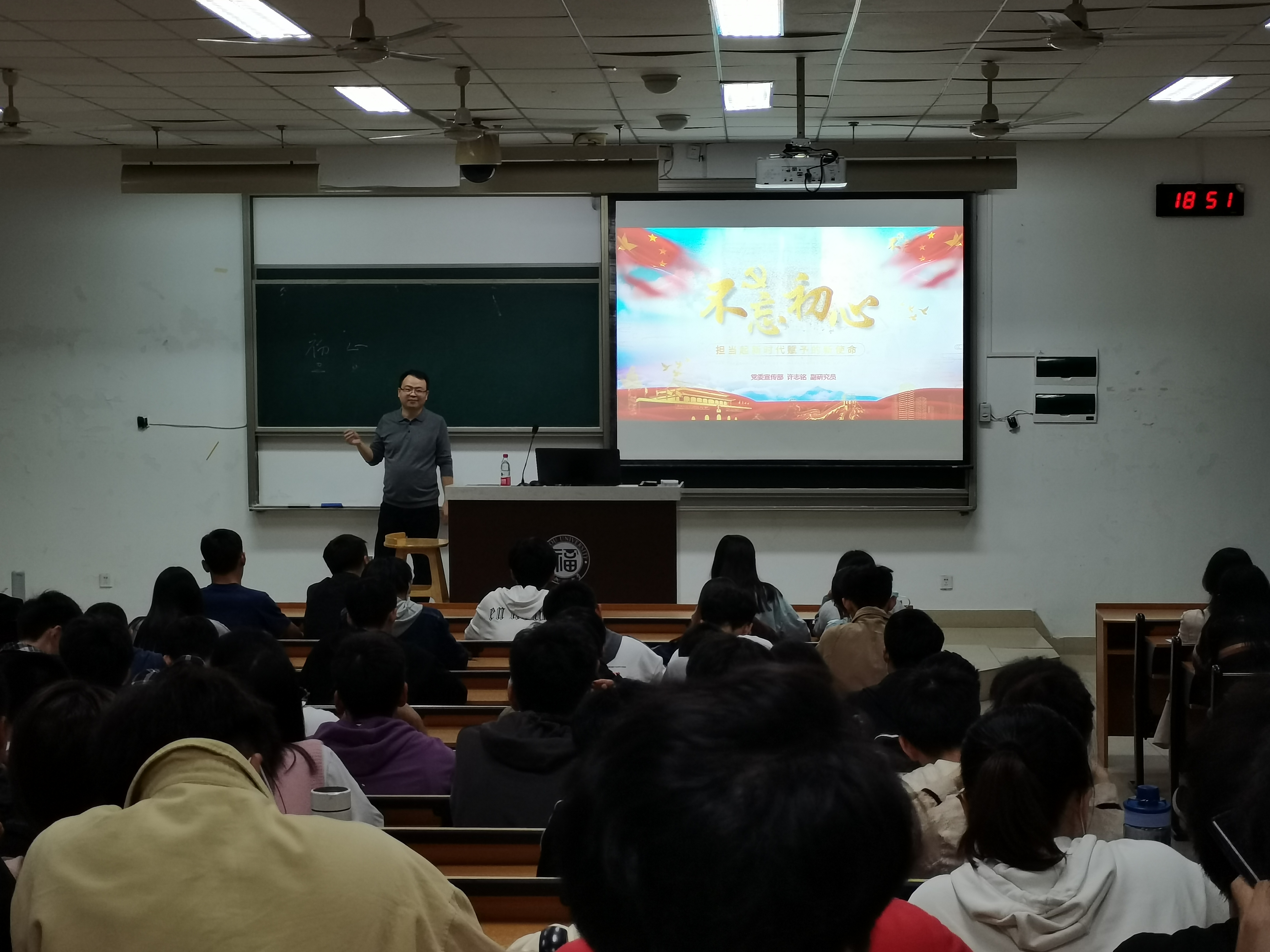 2021年10月29日,四学院联合发展对象培训班第四讲主题党课“不忘初心 担当起新时代赋予的使命”在文2105顺利开展。本次党课授课老师是校党委宣传部许志铭老师。