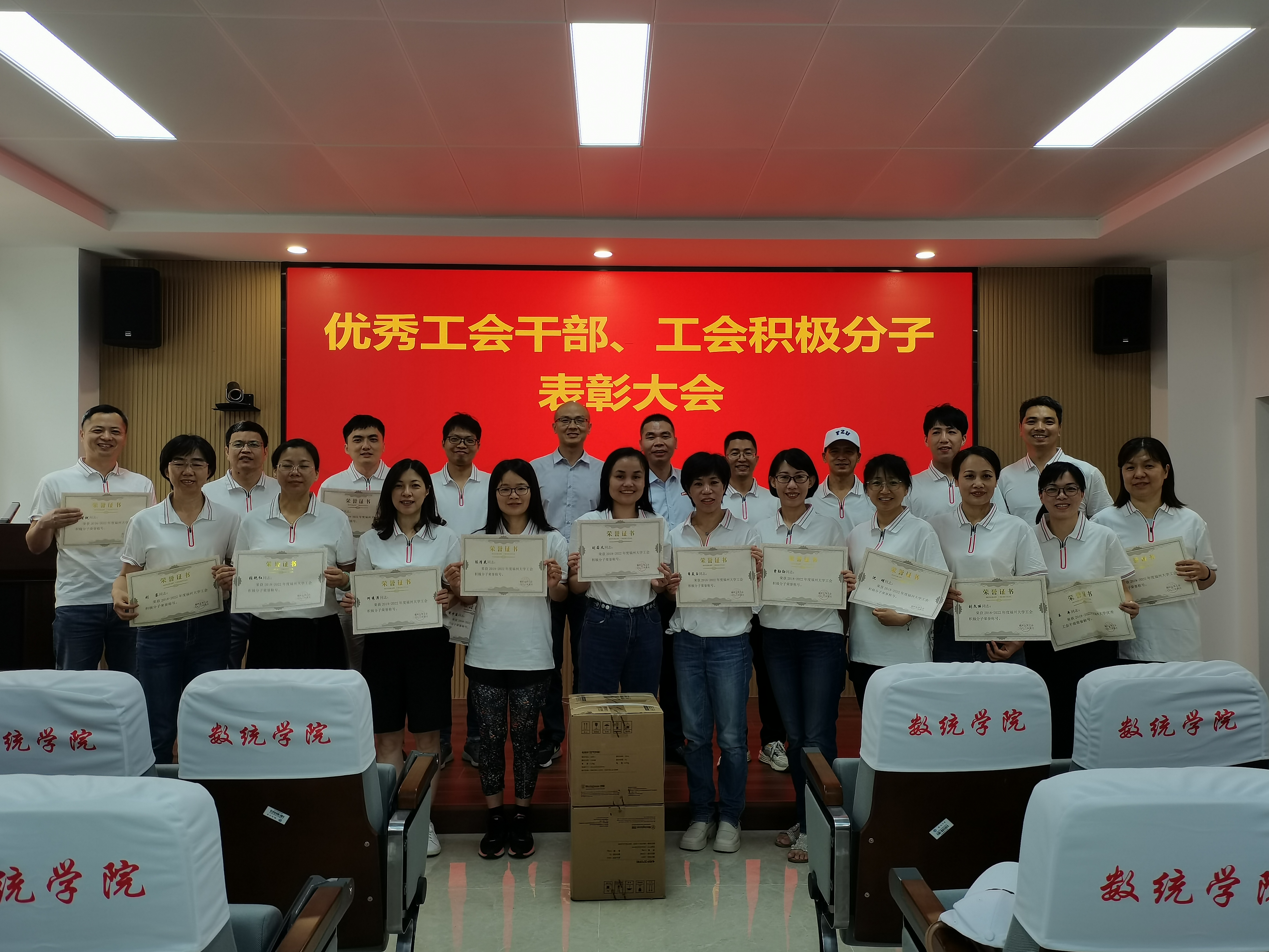 6月8日下午,学院工会在院208报告厅召工作总结表彰大会。学院党委副书记沈庆斌、副院长程航,工会主席吕书龙,以及受表彰的先进个人参加了本次会议,会议由工会主席吕书龙主持。