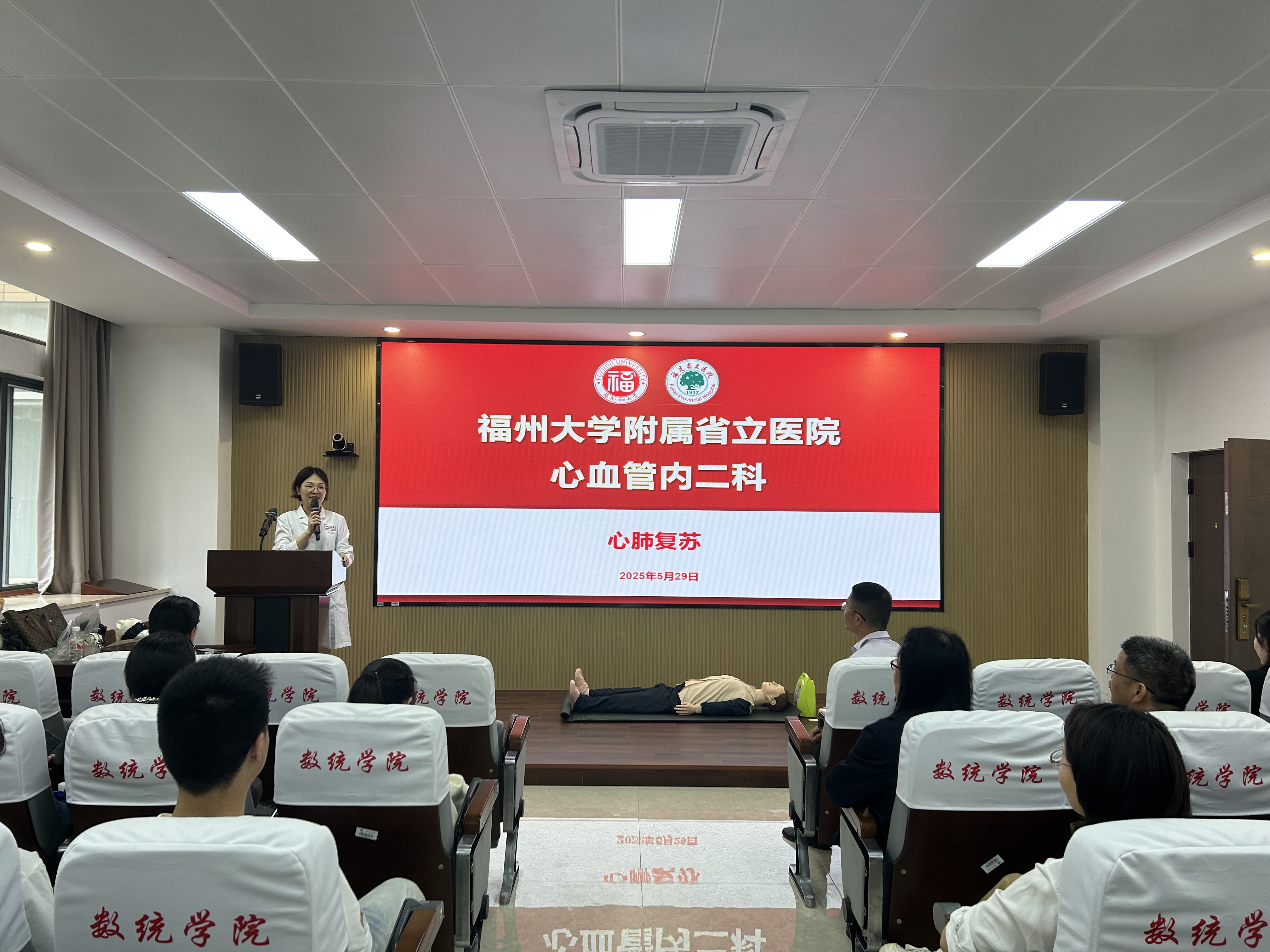 讲座中,省立医院心内二科吴梅琼主任结合案例与视频,围绕心肺复苏与AED使用展开科普讲解。她强调,心脏骤停“黄金4分钟” 是与死神赛跑的关键赛程,强调此时心肺复苏是解救生命的重要手段,并通过详细讲解操作步骤与注意事项,让师生们对心肺复苏的操作流程有了更为清晰的认识。