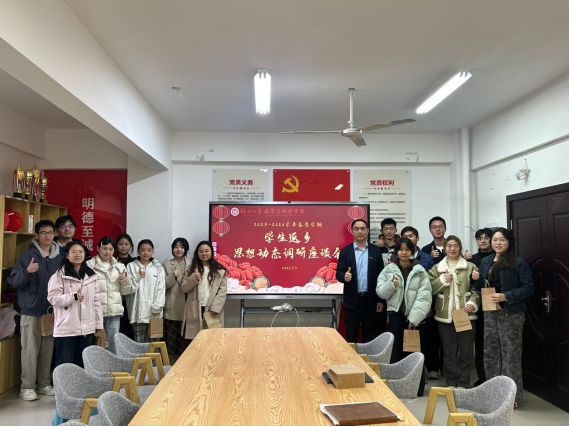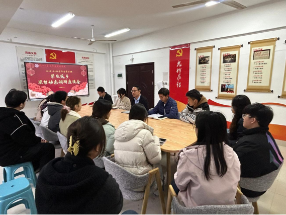 在35号楼二楼“一站式”学生社区共享活动室召开寒假学生返乡思想动态调研座谈会。学院党委副书记蓝荣聪、团委副书记沈成平、辅导员许佳琦与本硕博各班代表齐聚一堂,围绕寒假见闻、个人思考与新学期规划等内容深入交流。座谈会由辅导员许佳琦主持。
