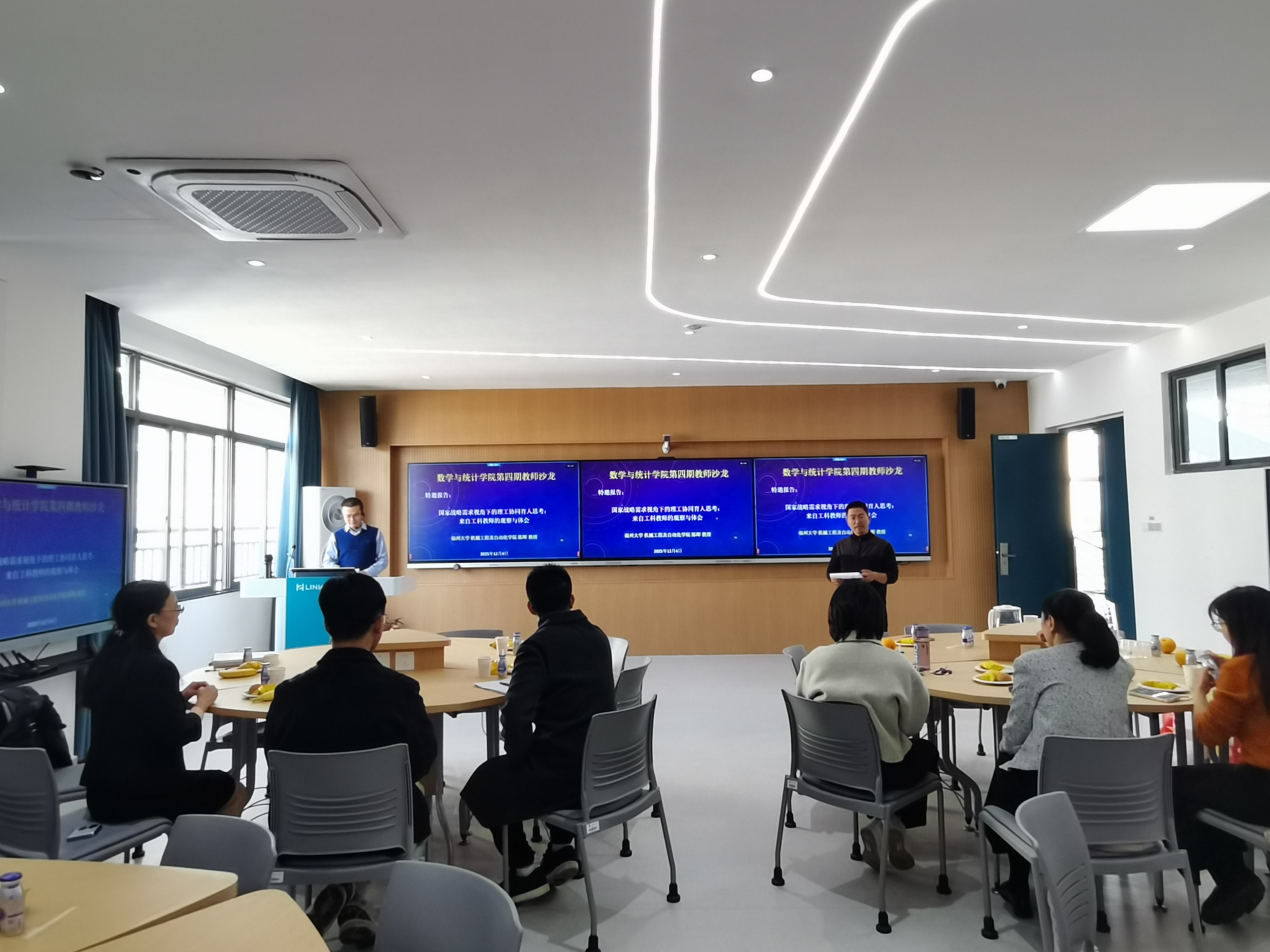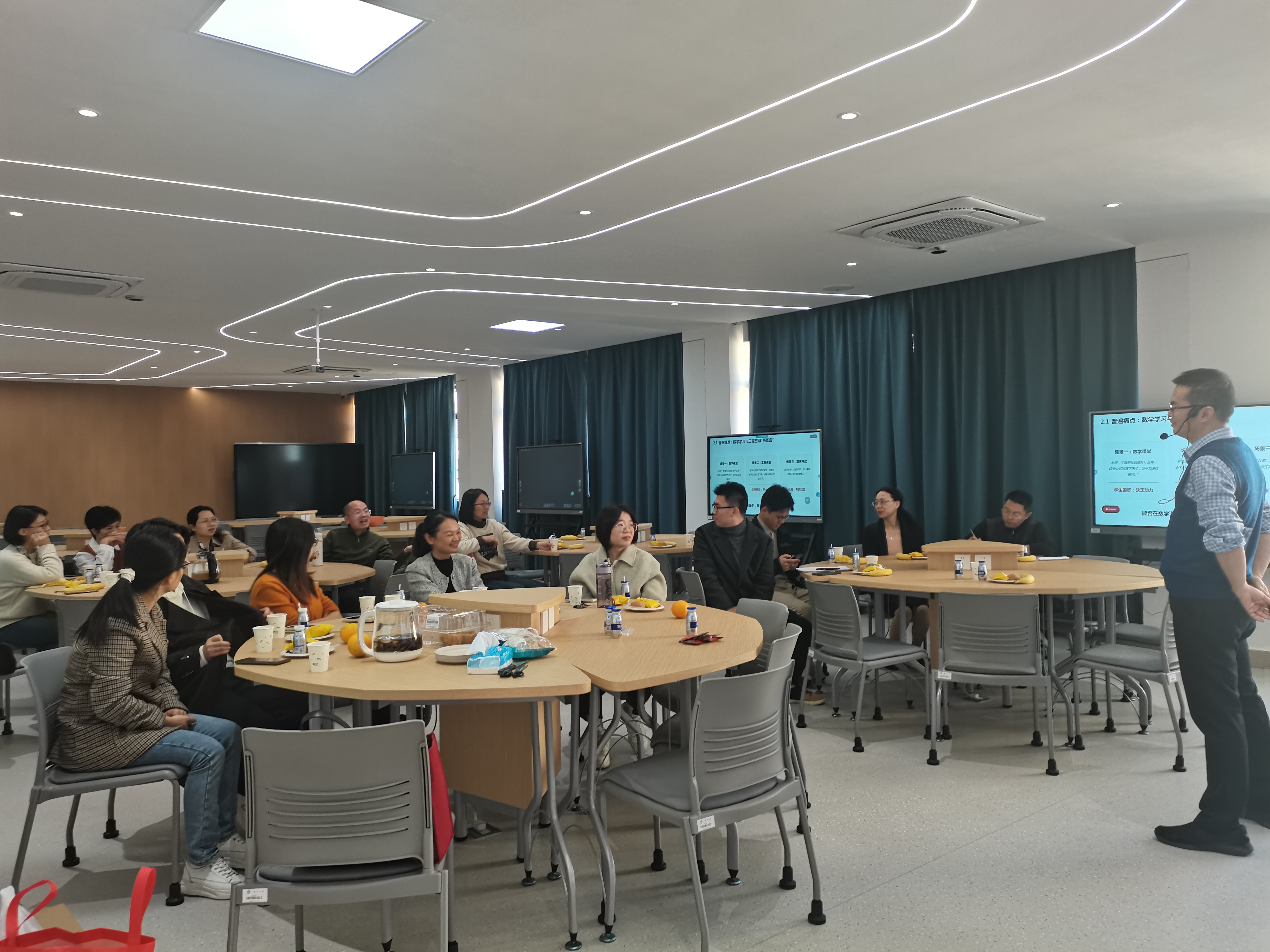 随后的茶歇及互动交流环节,与会老师们围绕报告内容踊跃提问、热烈探讨,就数学与工科的跨学科交叉融合路径、基础课程教学创新等话题交换观点和分享心得。